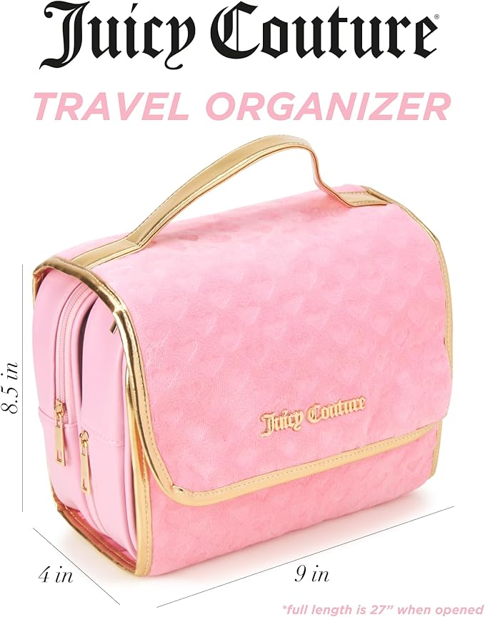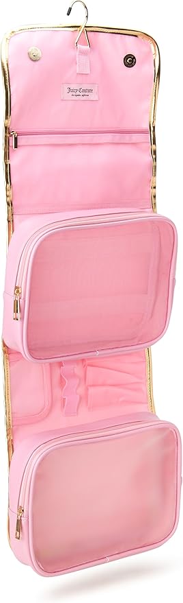 Juicy Couture Women's Toiletries Bag - Travel Makeup and Toiletries Hanging Organizer Set - Makeup Organizer Hanging Case Set, Pink