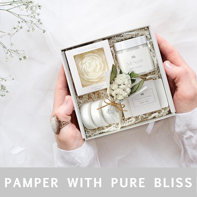 - THOUGHTFUL GIFT SHE’LL LOVE: Mothers dedicate their days to giving, nurturing, and caring. Now it’s time to give back with a gift that pampers and fills her heart with joy. A carefully selected collection of self-care essentials, including a soy wax candle, bath bomb, soap, salt scrub, bath salts, and mini-dried flower bouquet, allowed her to unwind and embrace well-deserved relaxation this Mother's Day.