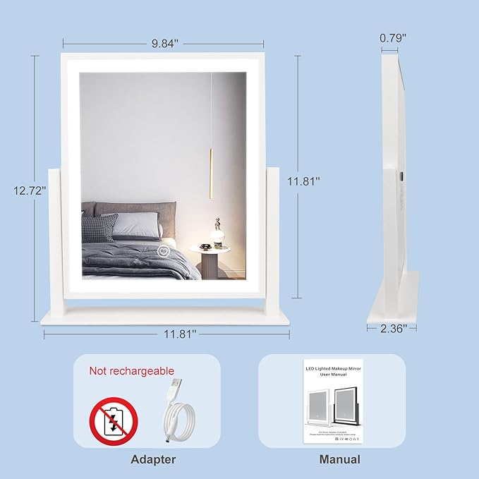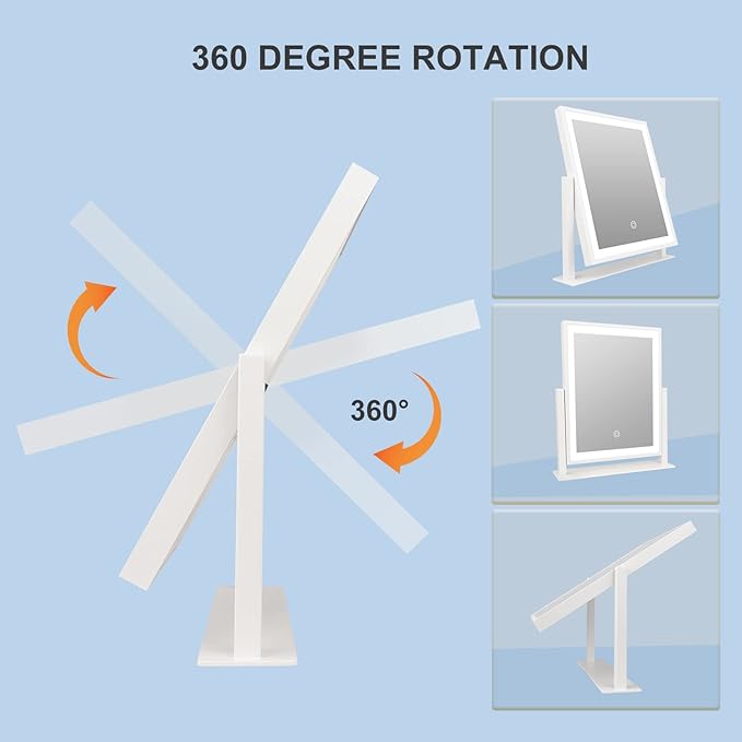 - Dimmable Touch Control:LED one-button touch to adjust 3 colors (3000K/4000K/6000K) dimming (10%-100%) to make your makeup mirror lifelike. The smart memory always kept the best setting to help you show your beautiful self