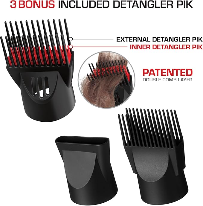 - 3 BONUS DETANGLER - Discover the perfect pik for your hair type from our range of options, which include: 1 patented double-layered detangler pik, 1 single-layered detangler pik, and 1 air concentrator.