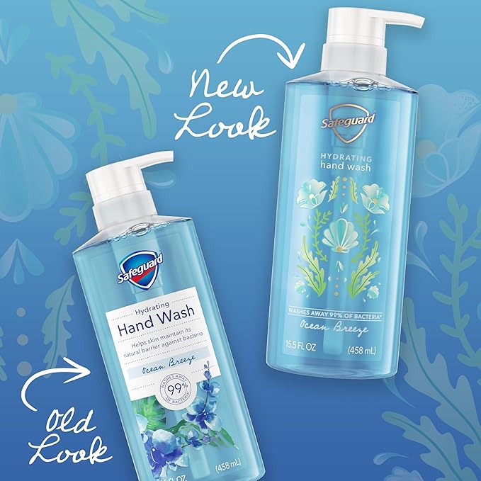Safeguard Hydrating Liquid Hand Soap, Ocean Breeze Scent, Made with Plant Based Cleansers, 15.5 oz (Pack of 4)