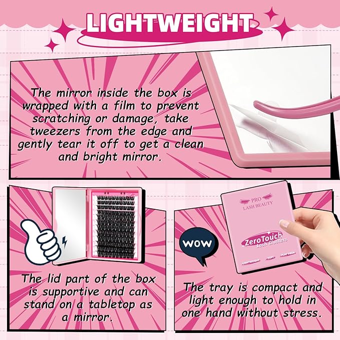 - 120 Pcs Cluster Lashes: The Cluster lashes are avaiable now! Different from other brands, PRO LashBeauty can provide 120 pcs in one tray!You can get more lashes and use more times.