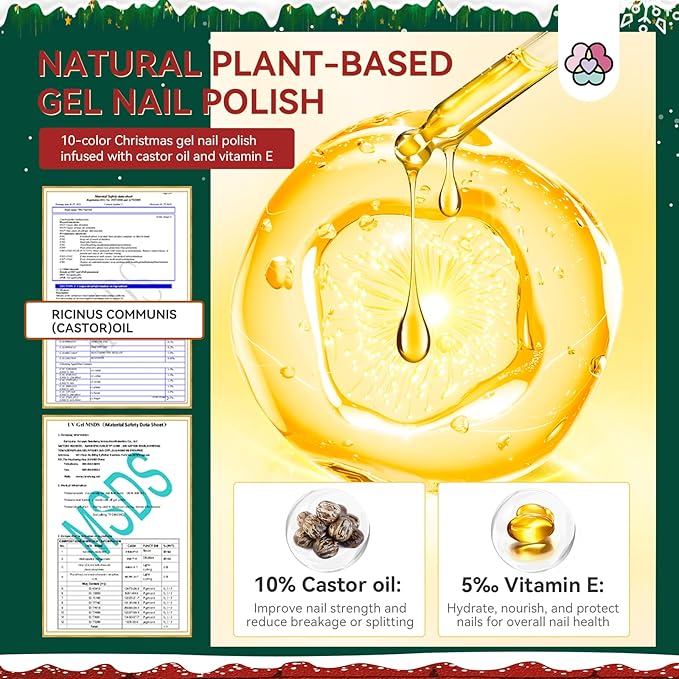 - Castor Oil & Vitamin E Gel Nail Polish: - SAVILAND castor oil & vitamin E gel nail polish, you can achieve stunning and salon-quality nails while simultaneously caring for their health and appearance. Vitamin E helps to hydrate and condition the nails, promoting flexibility and preventing breakage, castor oil helps to nourish and protect the nails, keeping them strong and resilient