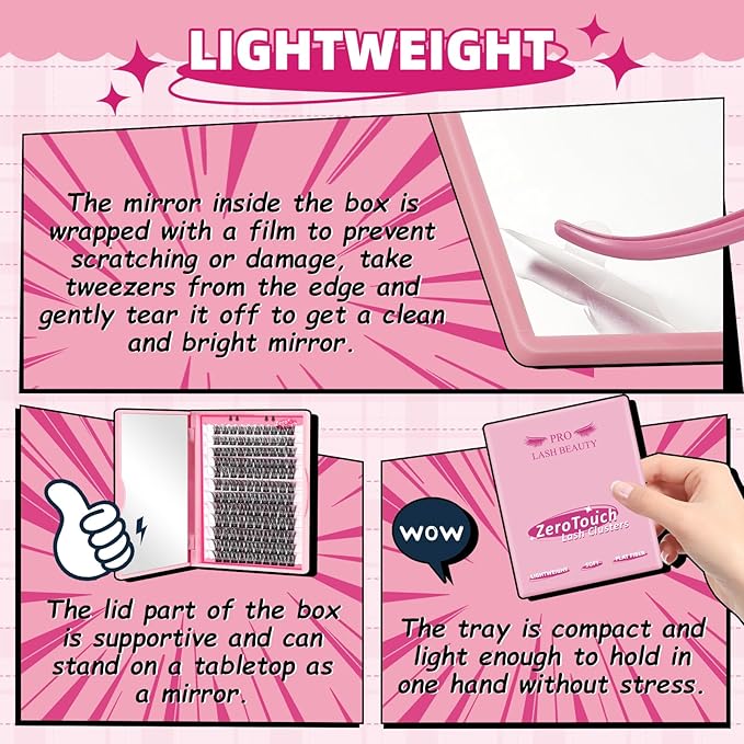 - 120 Pcs Cluster Lashes: The Cluster lashes are avaiable now! Different from other brands, PRO LashBeauty can provide 120 pcs in one tray!You can get more lashes and use more times.