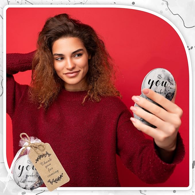 - Gifts to Celebrate Womanhood: the gifts set includes 50 pocket mirrors bearing powerful and inspirational messages, 50 thank you cards, and 50 organza bags to gift your beloved lady friends; The back of these handy compact mirrors [you make a difference]; Truly a heartwarming thought to keep your friends inspired and empowered