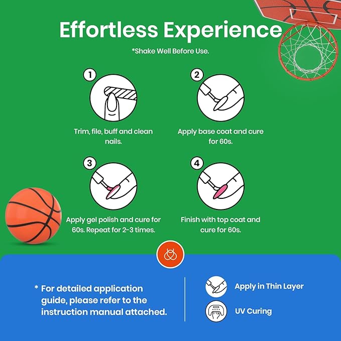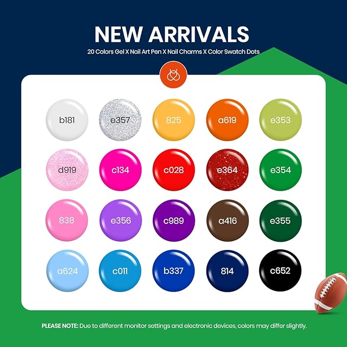 - 【Personalized Style】Nail polish in 20 neon shades is a must-have color for spring and summer! 20 X Mini Gel Colors (5ml/each bottle) + 3 x No Wipe Base and Glossy & Matte Top Coat ( 7.5ml/ each bottle). Double-ended Brush*1,Ball slicing accessories*1, Color card beans*3. Sports trend Blokecore will ignite your summer sports passion! This set perfectly combines the power of sports with the energy of summer.