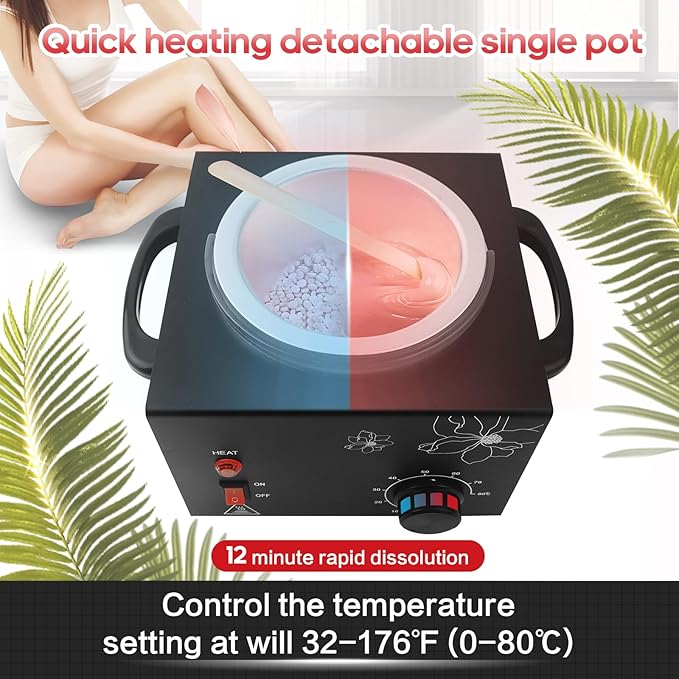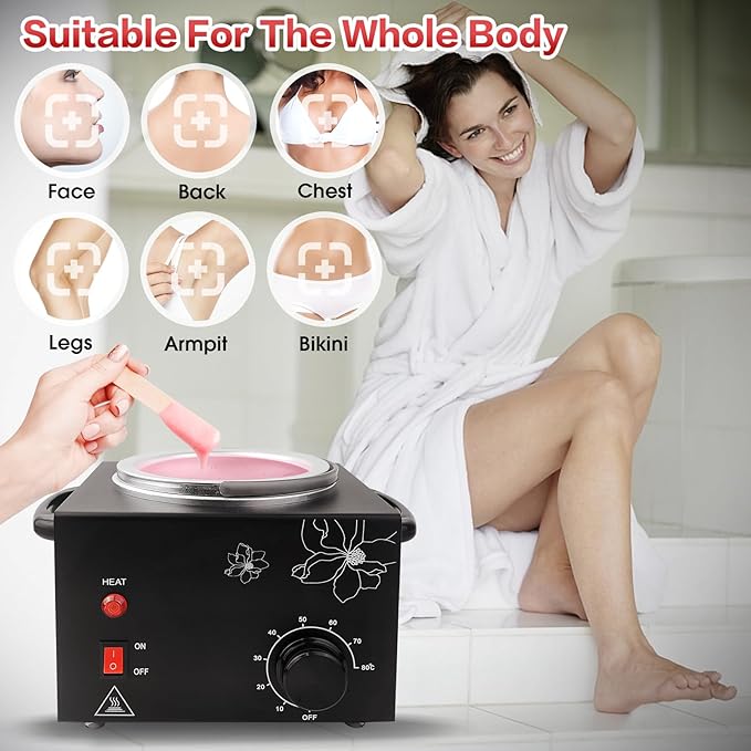 - 【Scope of Application】The professional wax warmer can be used for hair removal on hands, feet, face, and the whole body. Using a wax heater machine to remove hair makes the entire process safe, simple, and convenient, perfect for home use.
