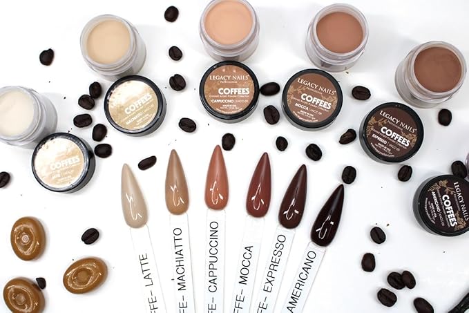 Legacy Nails Professional COLLECTION Acrylic Powder Kit 6 Colors Nail Art Set for Manicure DIY for Dip & Acrylic Nail Extensions (COFFEES COLLECTION)