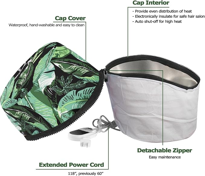 VICARKO Hair Steamer for Deep Conditioning, 10-Level Heats Up Quickly, 118” Power Cord, Heating Cap Hot Oil Treatment Heat, Electric Thermal Heated Steam for Natural Black Hair, Leaf Print
