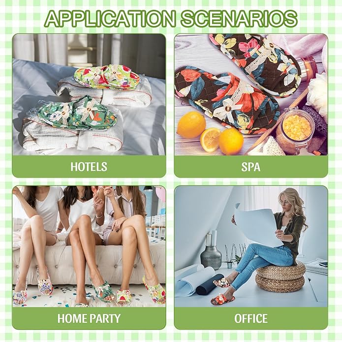 - Portable and Foldable: spa slippers are foldable and easy to carry, making them ideal for travel; Regardless if you're checking into a hotel, boarding an airplane, or visiting a spa, these slippers will be your cozy companion