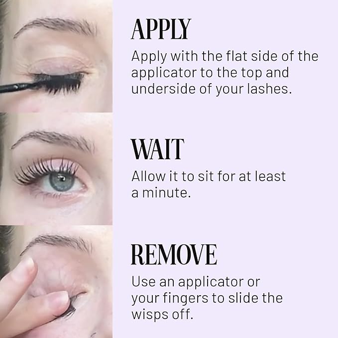 - How to Apply - Apply with the flat side of the applicator to your lashes. Let it sit for at least a minute. Use the applicator or fingers to slide the segments off. Use the comb side to remove any glue. Rinse and wipe, then insert back into the tube.