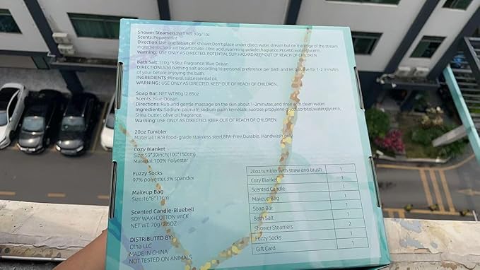 - 11-Piece Chic Ocean Blue Spa Gift Set: Includes a fluffy throw blanket, fuzzy socks, coffee, water tumbler, plus bath care items she’ll love! Bath salts, bar soap, shower steamers and a scented candle packed in the cosmetic bag help to create a spa retreat either at home or during travel! And, a lovely greeting card helps you tell her how special she is!
