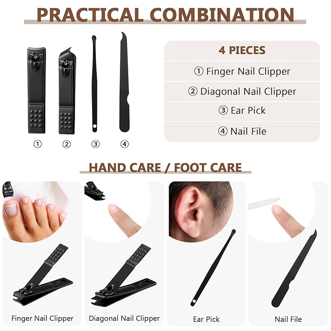 - Multipurpose Application: our professional nail clipper kit sets are suitable for most types of nails, such as natural nails, acyclic nails, thick nails, ingrown toenails and so on, ideal for travel or home use; A nice choice for gift giving occasions such as birthdays, holidays, Mother's Day, Father's Day, marriage, thanksgiving and Valentine's Day