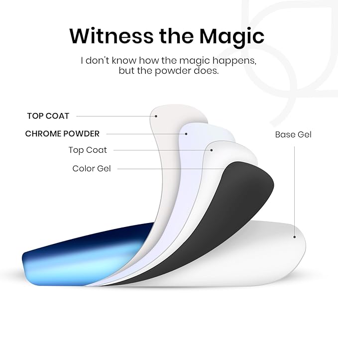- [Wide Application] The colorful nail powder is suitable to be applied on UV gel nails, acrylic nails, natural nails etc, a helpful DIY tool for nail art design. Different polish will give different actual effect. Trying different polish can also bring more fun to you with the chameleons powder, wonderful beauty gift sets.