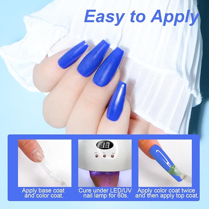 - 🧡【Easy to Use】All gel nail polish set need to be cured under LED nail dryer. Base and Top coat required. Average for LED nail lamp 60-120 secs.