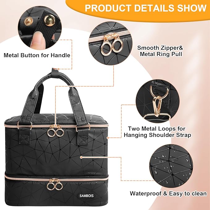 - PERFECT NAIL ORGANIZERS and STORAGE for NAIL TECH: There is a pair of handles with metal buckles on the top of the nail polish bag. When you go out, you can fasten the metal buttons to prevent it from falling off. There is a suitcase fixing strap on the back of the nail bag organizer case. When you need to carry a lot of nail tools and other nail polishes on business trips or travel, you can use our nail polish storage travel bag and fix it on the telescopic rod of the suitcase.