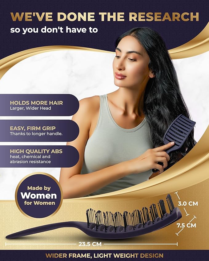 Vented Brush for Blow Drying, Shower & Thick, Coily or Straight Hair | Detangling Brush with Curved Vents & Wide Frame (Empowered Purple)