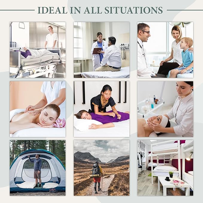- ✔️ HYGIENIC AND WATERPROOF: The disposable bed sheets for massage table are made of high quality non-woven fabric, guaranteeing hygiene, waterproofing and comfort. Ideal for maintaining cleanliness and preventing the spread of infections, start using our disposable sheets for massage table and ensure a safe and healthy environment for your customers!