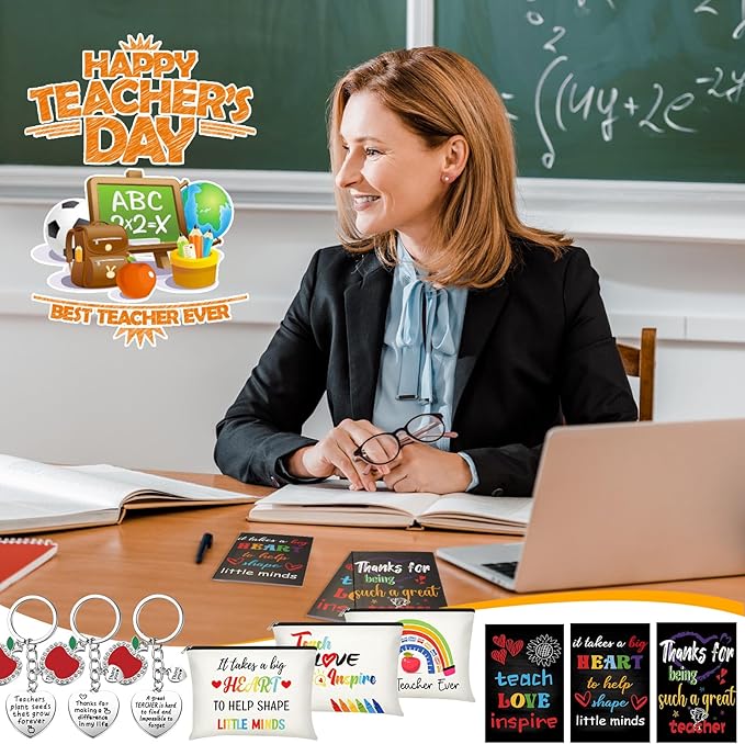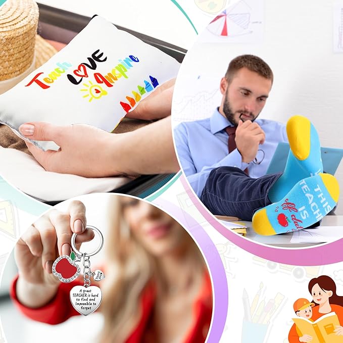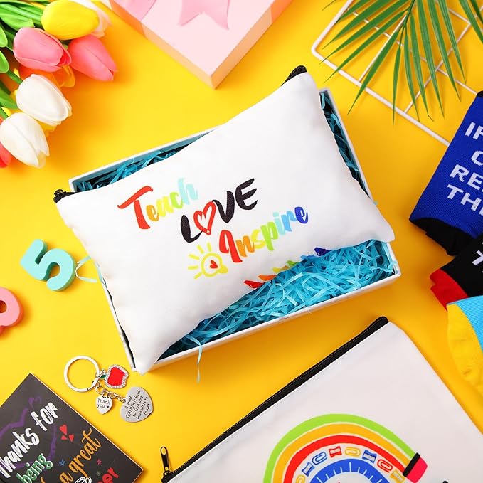 - Packaging Includes: you will receive 6 pairs unisex crew socks, 6 pieces of teacher makeup bags, 6 pieces of inspirational notepads with 6 pieces of teacher keychains, which are ideal appreciation gifts for teachers on Teacher's Day or their birthday