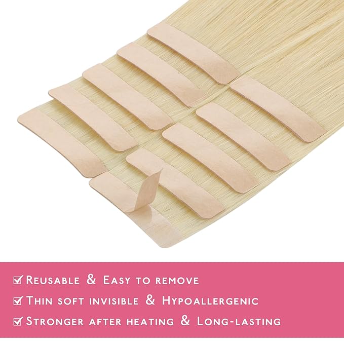 WENNALIFE Tape in Hair Extensions Human Hair Platinum Blonde Tape in Extensions, 10pcs 30g 20 inch Remy Invisible Tape Ins Straight Soft Real Human Hair Tape in Extensions Refill Set Extensions