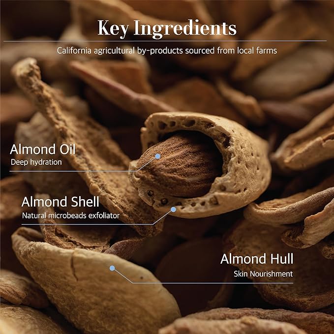 - [UPCYCLED INGREDIENTS] Directly sourced and upcycled from almond farms in California, our soap offers a gentle scrub to the skin while championing environmental love.