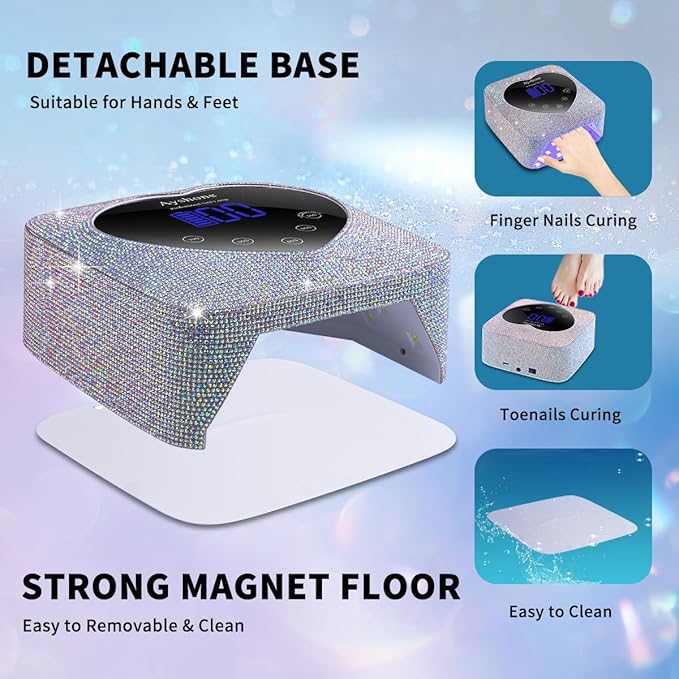- 【Detachable Base & Large Space】The rechargeable nail dryer has a removable magnetic base that makes it easy to remove and clean, and the large space ensures cure five fingernails or toenails. In addition, the metal mirror base can better refract the light source and quickly dry the nails. It is ideal for professional salon and home use.