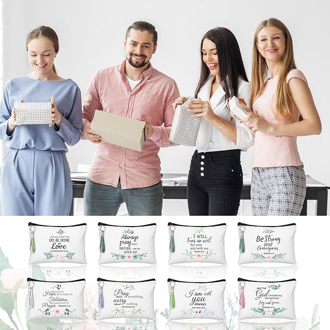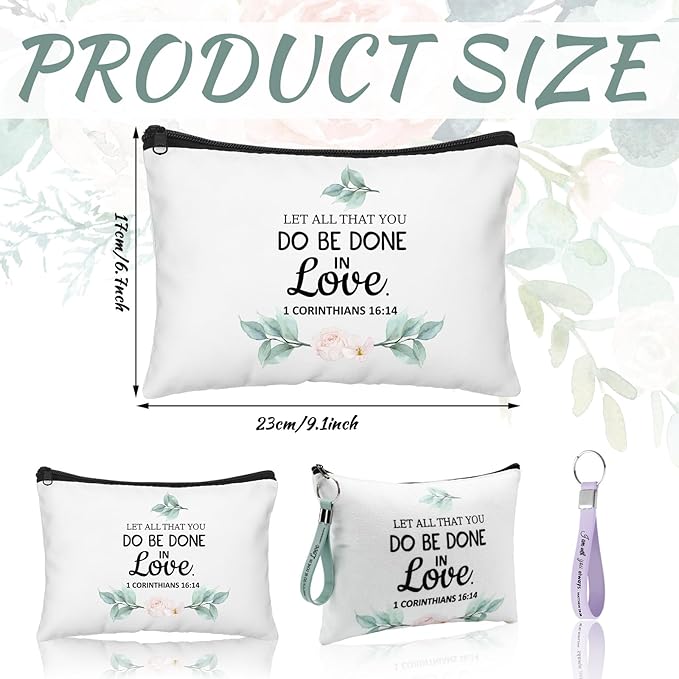 - Package Contents: you will receive 24 cosmetic pouches, a total of 8 styles, 3 of each, with bible words printed on them, and 24 matching silicone keychains, a total of 8 colors, 3 of each, with which you can match your makeup bag, sufficient quantity can meet your daily and sharing needs