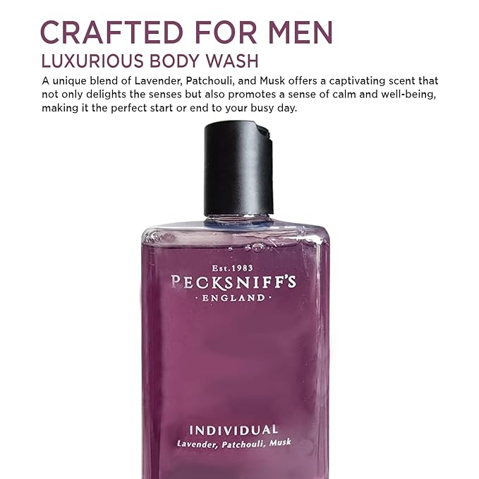 Pecksniff's Men's Individual Bath & Shower Gel Body Wash 500ml - Luxurious Lavender, Patchouli & Musk Scent - Nourishing & Hydrating Formula for All Skin Types