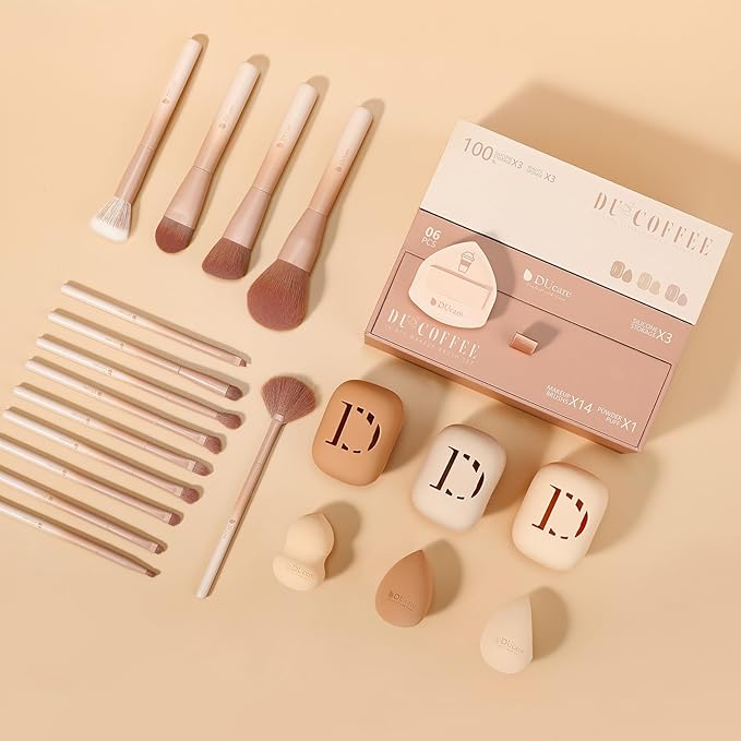 DUcare Makeup Brushes 14Pcs Coffee Series Makeup Brush set with Makeup Sponges Valentines Day Christmas Gifts Foundation Blending Face Powder Blush Eye Shadows Brushes