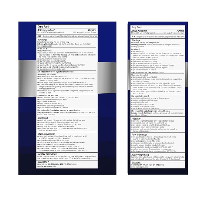 - REGROW THINNING HAIR: 4-month supply (four, 2.11-ounce bottles) of Men's Rogaine Unscented 5% Minoxidil Foam topical hair loss treatment scientifically proven to regrow hair & reverse hereditary hair loss