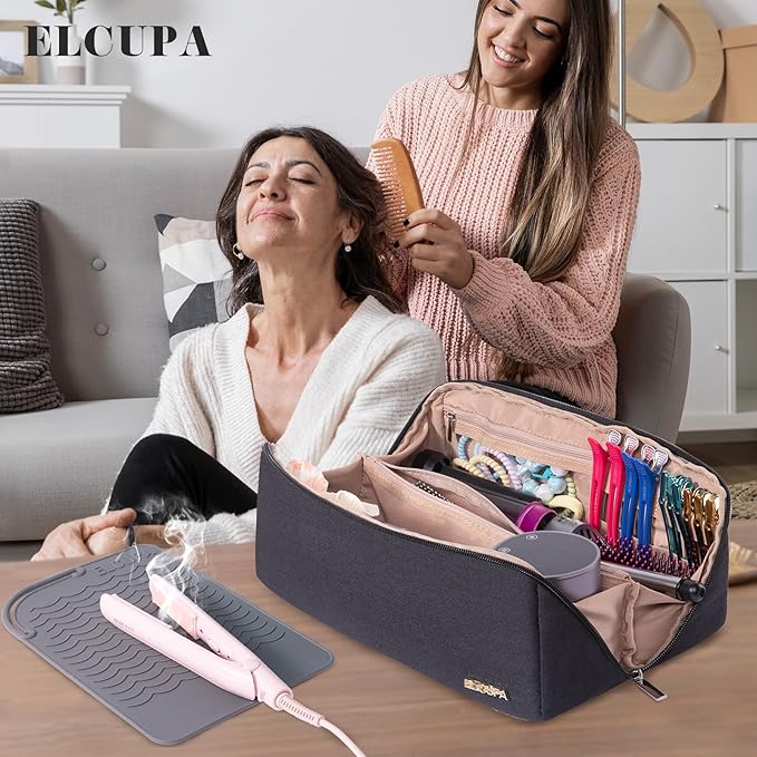 Large Travel Bag - 2in1 Hair Tools Organizer for Dryer Brush, Flat Irons, Straighteners, Curling Irons, Makeup Bag for Travel Essentials