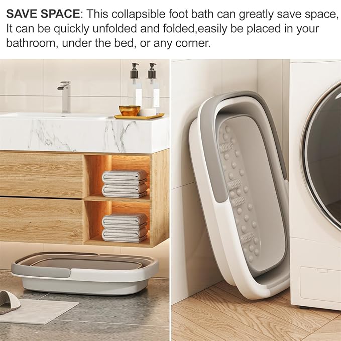 - 【Foldable Design for Easy Storage】This collapsible foot spa can be easily folded, the size after folding is only: 3”*17.5”*13.3”,The foot tub can be easily placed under the bed, in the drawer, car, behind the door, does not take up more space, It is very suitable for travel and camping