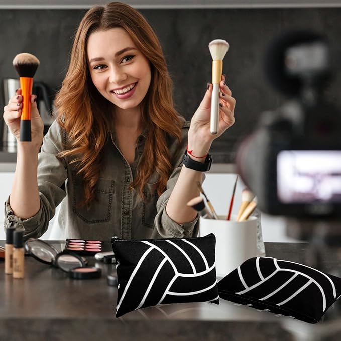 Eccliy 20 Pcs Volleyball Makeup Bags Bulk Sport Team Gifts Volleyball Cosmetic Bag Accessories for Women Toiletry Zipper Pouch Travel Canvas Gifts Stuff for Party Team Players Lover