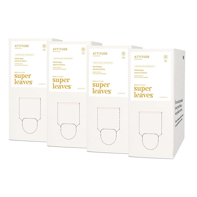 ATTITUDE Liquid Hand Soap, EWG Verified, Plant and Mineral-Based, Vegan Personal Care Products, Lemon Leaves, Bulk Refill Format, 67.6 Fl Oz