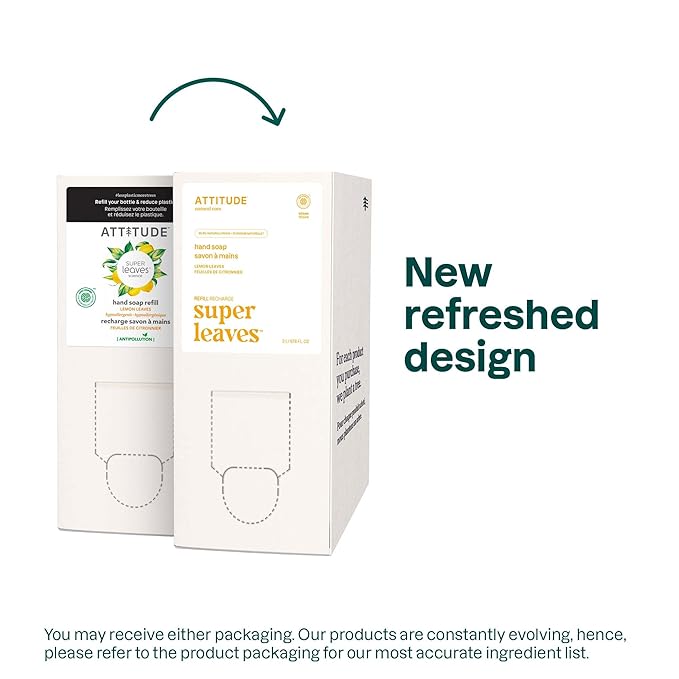 ATTITUDE Liquid Hand Soap, EWG Verified, Plant and Mineral-Based, Vegan Personal Care Products, Lemon Leaves, Bulk Refill Format, 67.6 Fl Oz