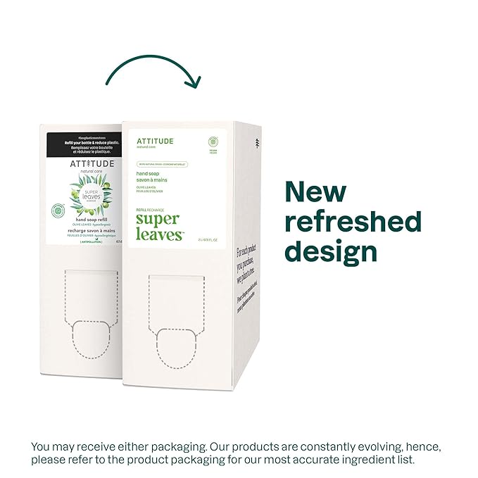ATTITUDE Liquid Hand Soap, EWG Verified, Plant and Mineral-Based, Vegan Personal Care Products, Olive Leaves, Bulk Refill Format, 67.6 Fl Oz