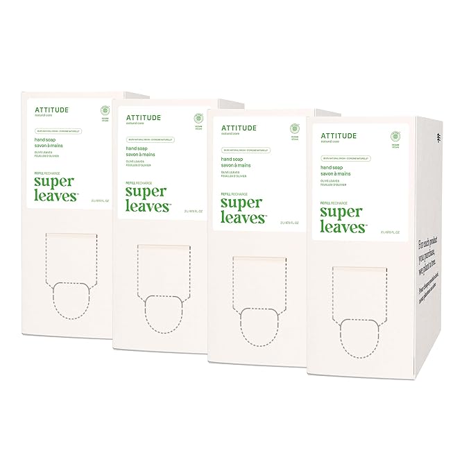 ATTITUDE Liquid Hand Soap, EWG Verified, Plant and Mineral-Based, Vegan Personal Care Products, Olive Leaves, Bulk Refill Format, 67.6 Fl Oz