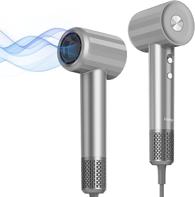 - 【High-Speed & Fast Drying No Heat Damage】 Fentgo hair dryer is equipped with 110,000RPM high speed brushless motor, provides a strong wind speed reaches 22m/s, which can quickly dry your hair in 2-8 minutes.Professional hair dryer built-in intelligent temperature control processor, real-time monitoring and regulation of high temperature, to avoid your hair from high temperature damage.