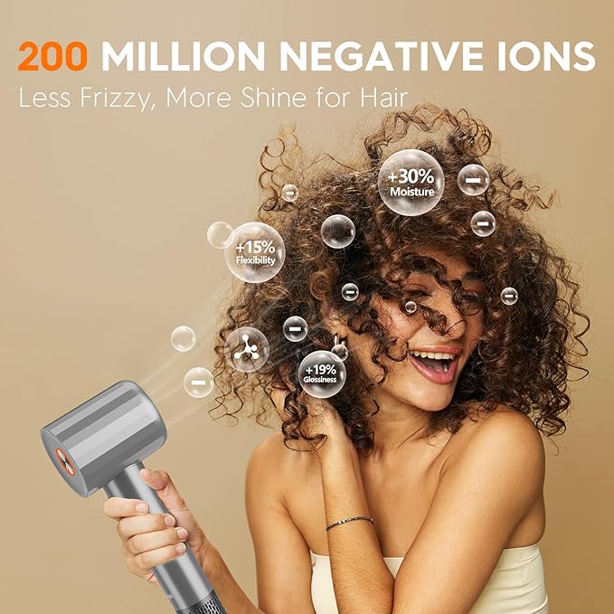 - 【Advanced Negative Ions & No frizz】The ionic hair dryer produces 200 million negative ions, which can balance the static electricity in the hair, lock the moisture in the hair, and make the hair softer, silkier and shiny.