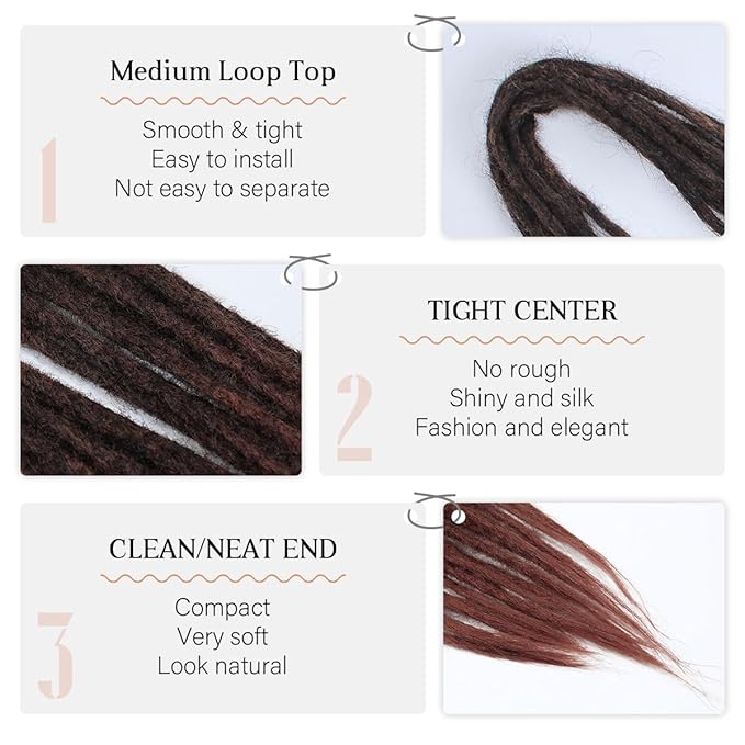- 【Material】100% handmade high quality synthetic fiber natural black to brown dreadlock extensions, 0.6 cm wide, easy to install. Looks like human hair.