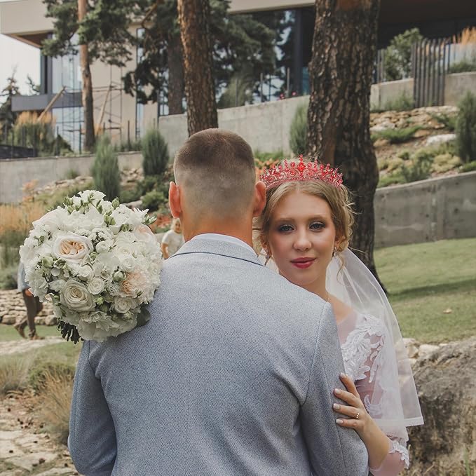 LIMELIA Women's Tiara for Henna Wedding Party|Glitter Hair Accessories for Bridal Birthday Pageant Prom Halloween Cos-play Christmas Party|Queen-Red