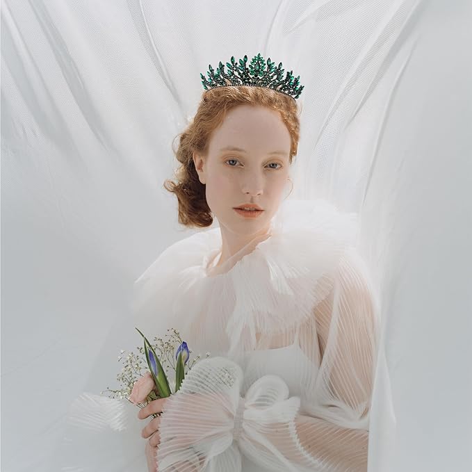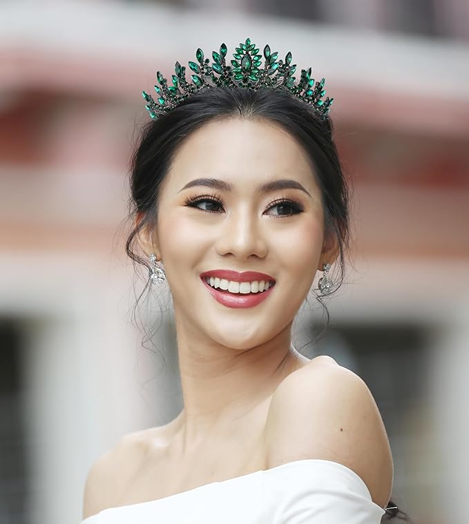 LIMELIA Women's Tiara for Henna Wedding Party|Glitter Hair Accessories for Bridal Birthday Pageant Prom Halloween Cos-play Christmas Party|Danver-Green