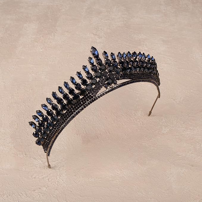 LIMELIA Women's Tiara for Henna Wedding Party|Glitter Hair Accessories for Bridal Birthday Pageant Prom Halloween Cos-play Christmas Party|Antares-Navy Blue