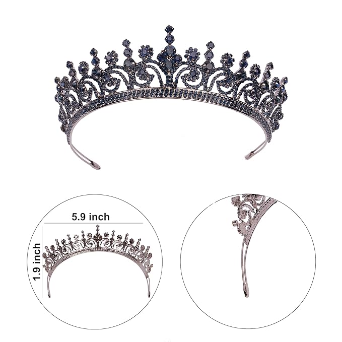 LIMELIA Women's Tiara for Henna Wedding Party|Glitter Hair Accessories for Bridal Birthday Pageant Prom Halloween Cos-play Christmas Party|Queen-Navy Blue