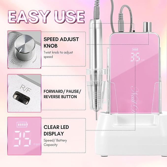 - Model Name : Pink Electric Nail Drill 35000RPM