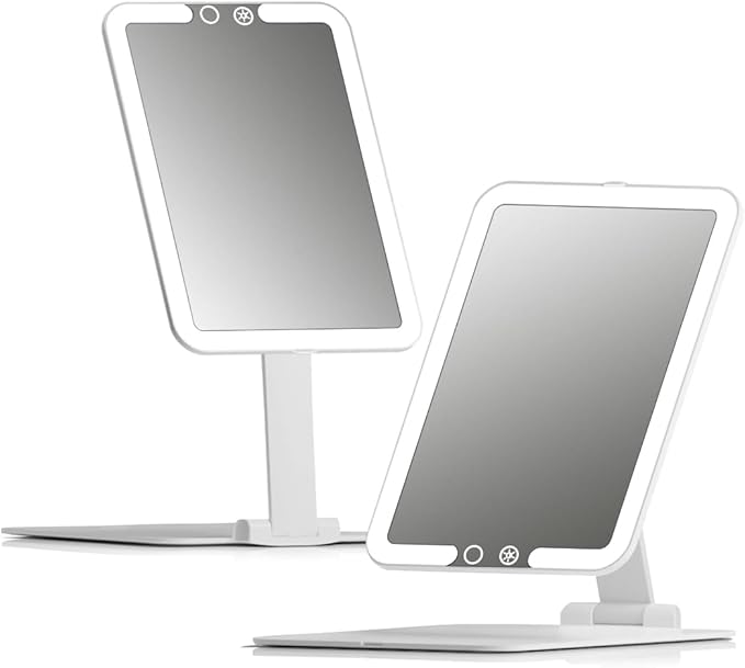 - SMALL MAKEUP MIRROR WITH PROTECTIVE CASE: Our folding lighted makeup mirror keeps your ultra-reflective glass free of scratches with a pre-installed foldable case.