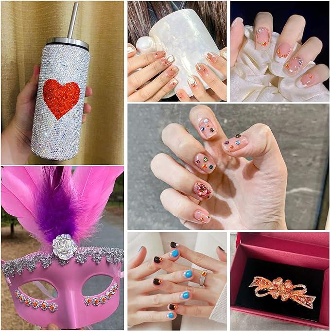 - Wide Applications: These nail gems and rhinestones kit are good for nail art,face art,eye makeup,body art,clothes,wedding dress,bags,shoes,phone case,and other craft decoration.DIY your life,Enjoy your life.