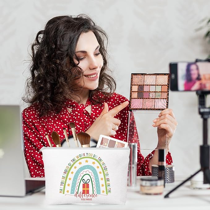 Sieral 30 Pcs Rainbow Canvas Makeup Bags Bulk Housekeeping Week Appreciation Gifts Inspirational Cosmetic Bags with Zipper Thank You Gifts for Teacher Employee Coworker Volunteer Nurse(Joyous)