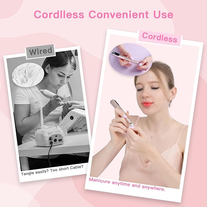 - 【Cordless Convenience Use】With a built-in rechargeable lithium-ion battery, this electric nail file allows you to enjoy your mani and pedi time wherever you want without the hassle of annoying cables. Plus, it also supports corded operation when the power runs out