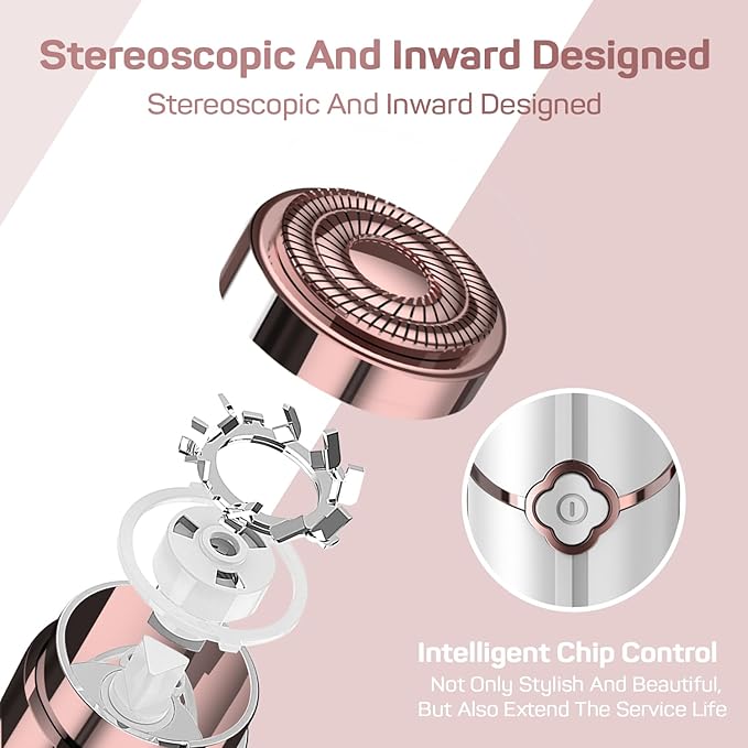 - Upgrades and innovative technology: The updated chip smart control button makes the face razor women more intimate to use and lasts longer. This hair removal device uses revolutionary butterfly technology that microscopically removes hair through a rotating head covered by a plate. The horizontal cutting head with two rotating blades increases the contact surface of the face razor.